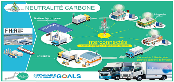Isuzu, Hino et Toyota visent la neutralité carbone et, à travers leur partenariat tripartite, ils souhaitent participer à la construction d'une nouvelle ville du futur à Fukushima. Cette dernière, s’intéresse à l'hydrogène, une nouvelle forme d'énergie, et a entrepris de bâtir l'un des premiers modèles de société hydrogène.